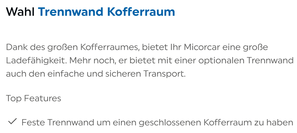 Komfortsitze, Inbegriffen